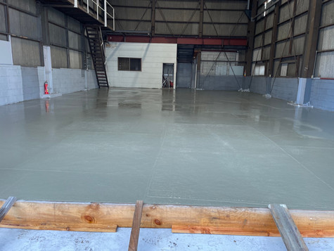 倉庫の状態によりますが、もとの状態がガタガタのコンクリートの場合は、綺麗にすることからスタートいたします。左の写真はコンクリートのレベルを測るアンカーボルトを仕込んでおります。床はまだガタガタの状態→右の写真は、その翌日にしっかりとレベルを合わせてコンクリートを打ち込みした後になります。